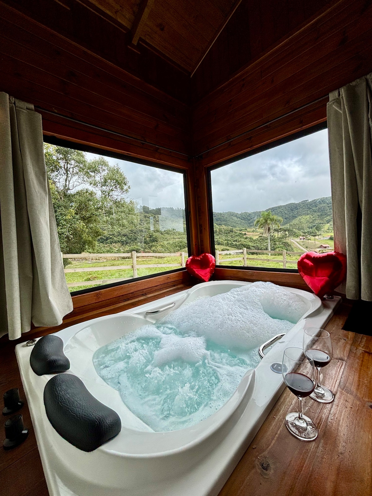 Nossos chalés são um refúgio para casais que buscam tranquilidade e conexão. Com vista para a serra, banheira de hidromassagem, lareira e um ambiente acolhedor, é o lugar ideal para relaxar e viver momentos a dois. E para tornar a experiência ainda mais especial, oferecemos a entrega de uma cesta de café da manhã fresquinha direto no chalé.