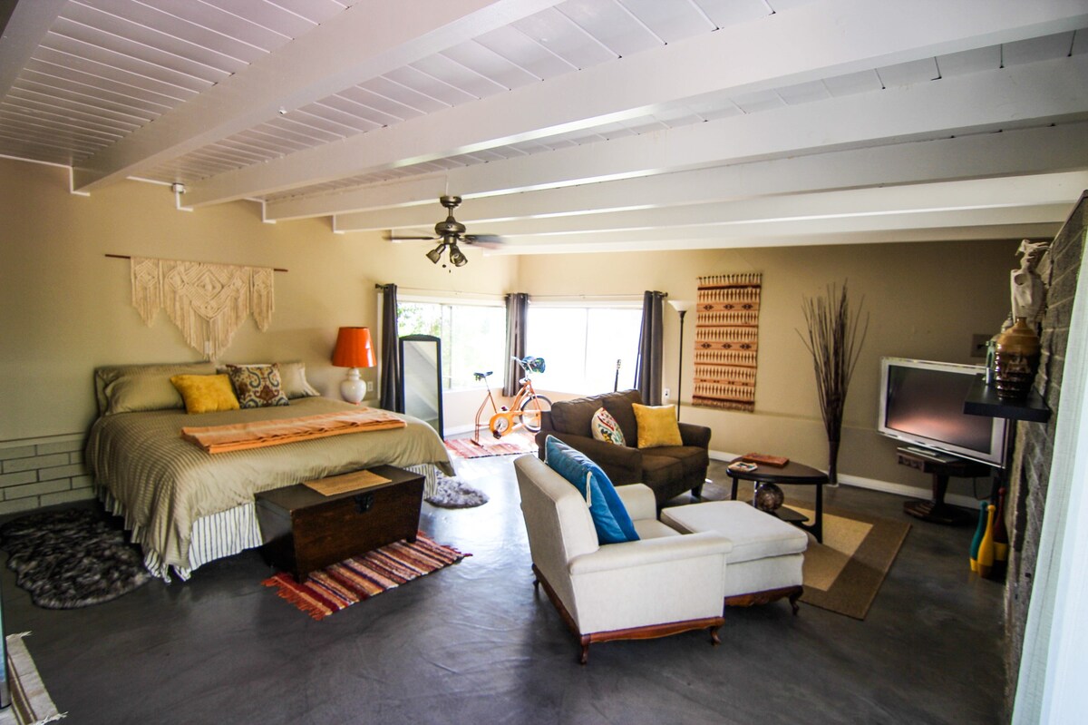 *Pozabite na skrbi v tem čudovitem prostornem in mirnem prostoru, ki meri 700 kvadratnih metrov. *Privoščite si umetniški občutek tega na novo prenovljenega velikega apartmaja za goste, ki se nahaja na idealni lokaciji sredi mesta v bližini SDSU. Umaknite se iz postelje in uživajte v skodelici kave na zasebni terasi, nato pa raziščite VSE glavne znamenitosti mesta, ki so oddaljene le kratko vožnjo. Ta čudovit prostor je čist, svež in v celoti opremljen z odličnim slogom, ki ga je edinstveno oblikoval eden najbolj uveljavljenih umetnikov v San Diegu z izvirno umetnostjo. * Uživajte*