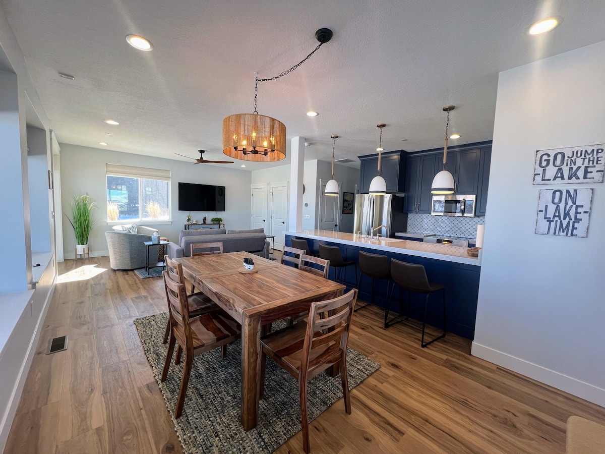 BlackRidge LakeHouse - kjer lahko uživate v čudovitem razgledu na Bear Lake! Sprostite se v tem mirnem in elegantnem prostoru. To prenočišče s 3 spalnicami in 3 kopalnicami z osupljivim razgledom na jezero vam bo vzelo sapo. Razmislili smo o vsaki podrobnosti. Dobili boste idealen dostop do plaže, da lahko plavate v bazenih, se sprostite v masažni kadih ali pa se igrate na plaži. Pridite domov in se sprostite na terasi, igrajte koruzno luknjo ali košarko. Za otroke je na voljo celo spalnica. Pridite ven in uživajte v najboljšem, kar ponuja Bear Lake!
