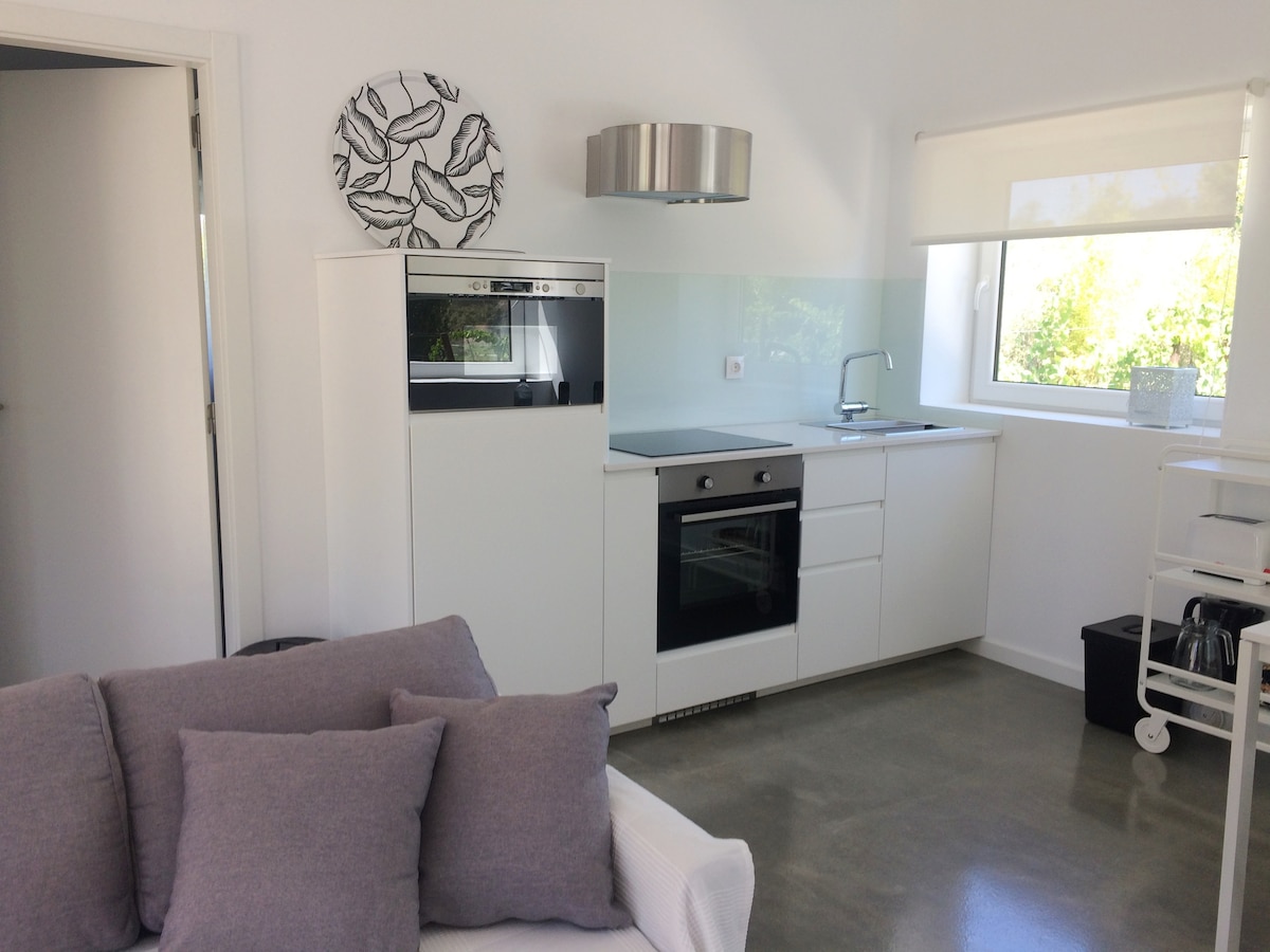 Farmhouse in Ribatejo, 20km from Santarém, capital of Gothic. The guest house, with 60m2 and views of the orchard and garden, is designed for 3 or 4 people. It has a bedroom, living room with dining area and kitchenet, bathroom with shower. For larger groups, next to the guest house we have a private second bedroom/suite with 18m2, for 1 or 2 people, independent and wonderfully comfortable. Both spaces have AC, Smart Tv and wi-fi. The owner lives on the property.