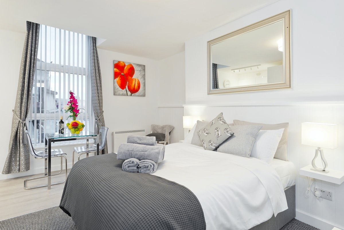 Uvrščeno med 10 % najbolje ocenjenih prenočišč na Airbnbju 🏆 Celotno stanovanje, nič skupnega, hiter Wi-Fi (95–100 Mb/s), Google Home, 50-palčni HD-televizor Sky in Netflix. Dobrodošli ste z kontinentalnim zajtrkom z osebno izbiro mleka in vsemi osnovnimi potrebščinami, ki jih potrebujete za odlično bivanje. Če navedete čudovito lokacijo, je to stanovanje v notranjosti zelo mirno. Gleda na vrtno stran in ker je v soseski samo 10 stanovanj, vam zagotavljamo odličen spanec. Žal ni dvigala