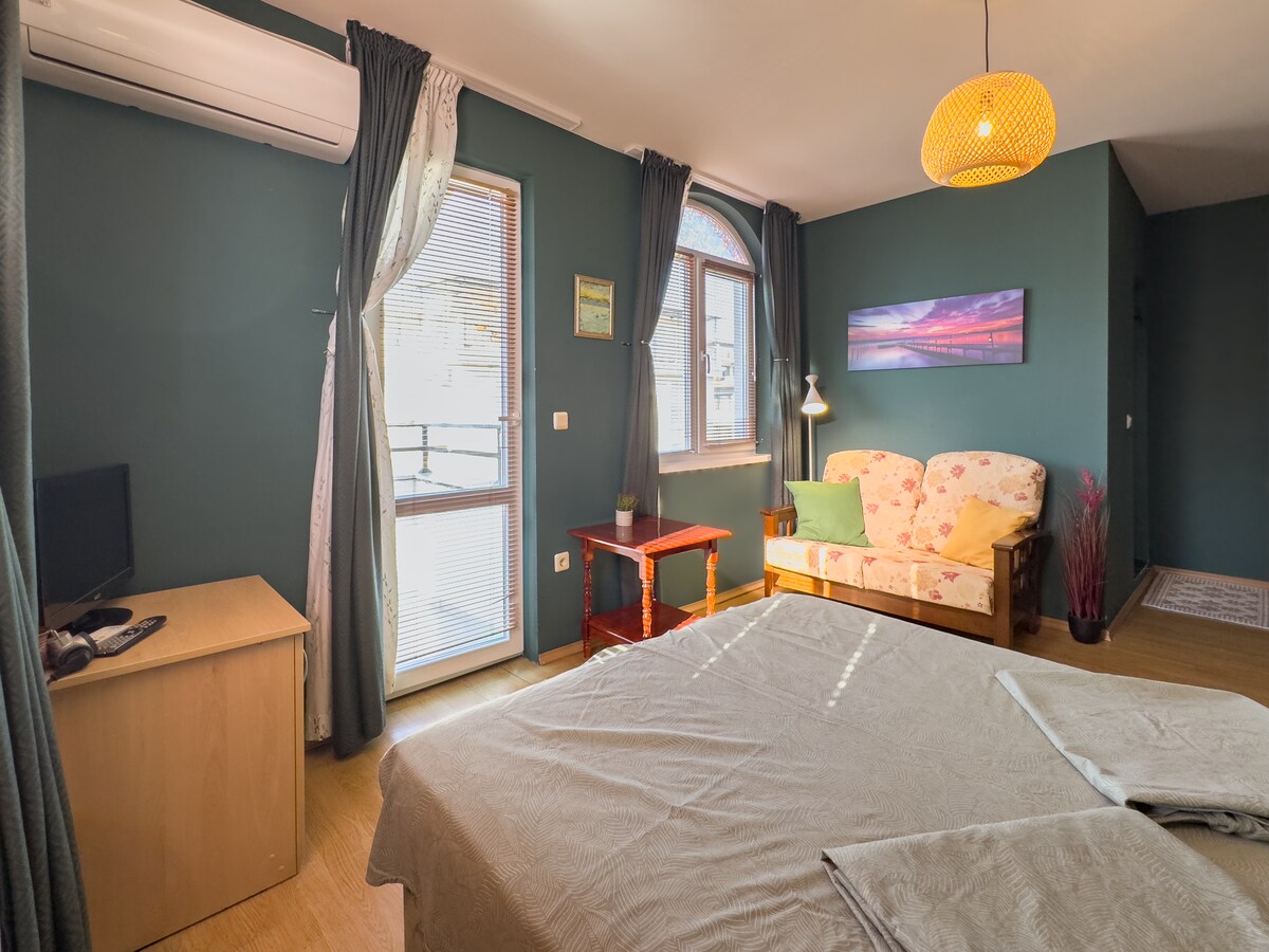 Najemite stanovanja ob morju v Bolgariji - najboljše ponudbe čakajo na vas! Udobne in svetle sobe v hiši za goste v Ravdi: dve enojni postelji, klimatska naprava, TV, delovni prostor in balkon s pogledom na zeleno dvorišče. Samo 15 minut hoje do morja! Brez posrednikov in nepotrebnih težav - izberite udobno nastanitev za vso družino ali skupino prijateljev. Goste sprejemamo s hišnimi ljubljenčki! Hišni ljubljenčki lahko počivajo pri vas.