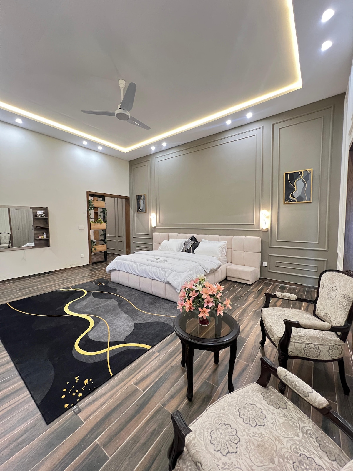 Enjoy a refined stay at The Platinum View House, a modern basement villa in Rawalpindi featuring a private open lawn and spacious interiors. The home includes one master bedroom and one separate sleeping area with a single bed, a bright living area, a tea and coffee preparation space, and two large bathrooms. Ideal for couples, small families, business travelers, and overseas guests seeking a peaceful, stylish stay in Rawalpindi