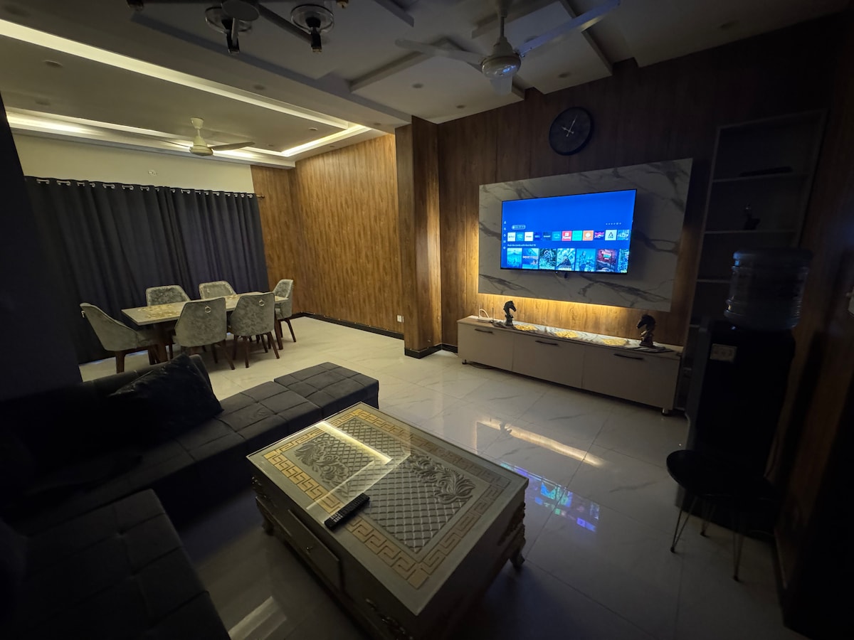 Dobrodošli v naših elegantnih dvosobnih apartmajih v DHA 5 Islamabad. Uživajte v priročnosti hitre vožnje na delo in se sprostite v prostoru z lepo dekoracijo in popolnoma opremljenim domačim kinom. Udobno prenočišče, ki je idealno za popotnike, ki iščejo udobje in zabavo, ponuja sodobno opremo na odlični lokaciji. Je popolnoma ločen del z ločenim vhodom in parkiriščem, primeren za družine, zato je zelo varen in miren. Zabave in glasna glasba niso dovoljeni. Neporočeni pari niso dovoljeni.