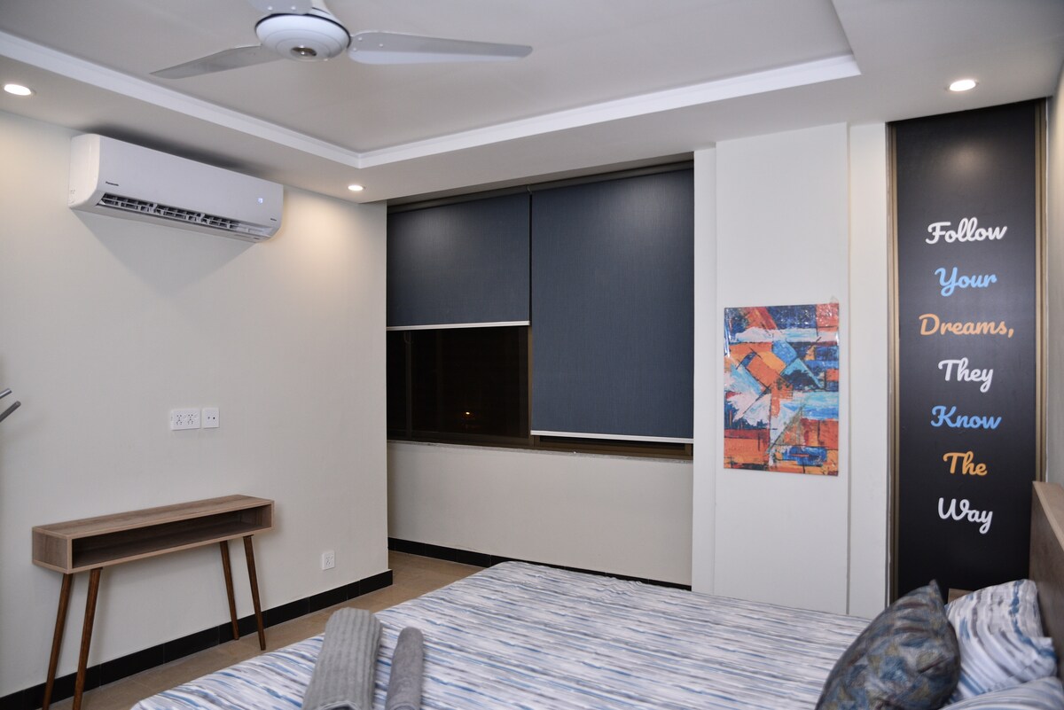 Dobrodošli v svojem kotnem stanovanju v E-11/2 v Islamabadu, navdihnjeno z boho! Udobno pritlično stanovanje z 1 spalnico in 1 kopalnico je svetlo, zračno in premišljeno oblikovano za svoje udobje in čar. Uživajte v prostornem salonu, delovni postaji, pametni TV-ju, hitrem Wi-Fi-ju in veliki zakonski postelji z senčili za zatemnitev sobe. Nahaja se v mirni soseski s podzemnim parkiriščem in je popoln prostor za samostojne popotnike, pare ali delavce na daljavo, ki iščejo eleganten in spokojen oddih.