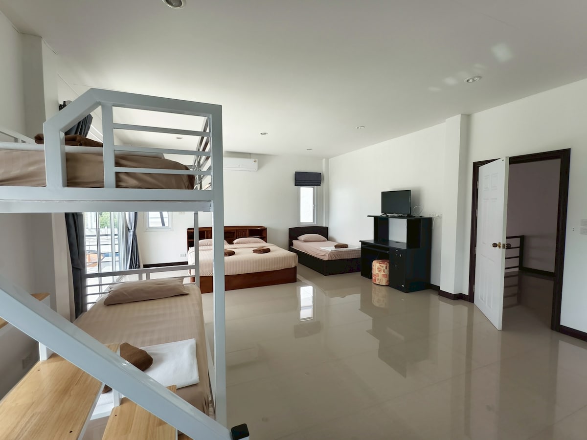 Dive into adventure at our unique shark-themed villa in Rayong, Thailand! Perfect for families & friends with 4 queen bedrooms, private pool, fully-equipped kitchen & cozy living spaces. Pet-friendly waterfront retreat where childhood wonder meets modern comfort. Create unforgettable memories with loved ones. Smart TV, WiFi included. Make a splash in paradise at Shark House!