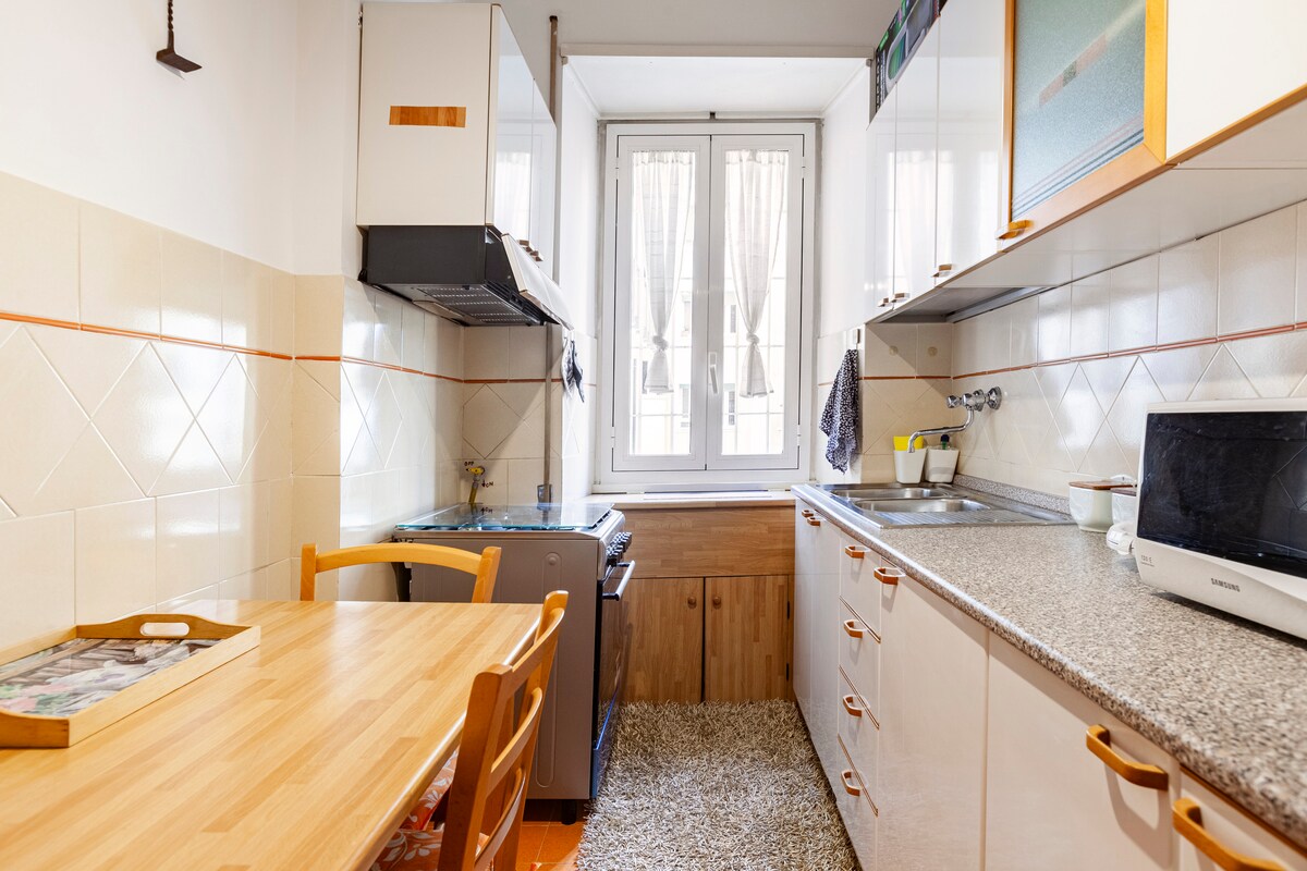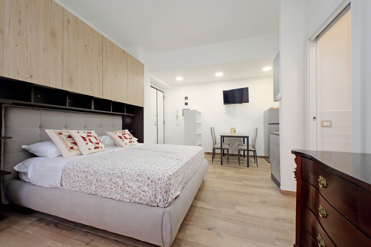 Questo appartamento offre tutto ciò di cui avete bisogno per un soggiorno indimenticabile. L'appartamento dispone di una cucina, un moderno bagno e un'accogliente camera da letto, il salotto è stato progettato per essere flessibile: con un letto a scomparsa trasformabile in un secondo letto matrimoniale Siamo situati nel quartiere Re di Roma, circondati da negozi, ristoranti e caffetterie. La stazione della metro A è a due passi, offrendovi un comodo accesso alle principali attrazioni di Roma.