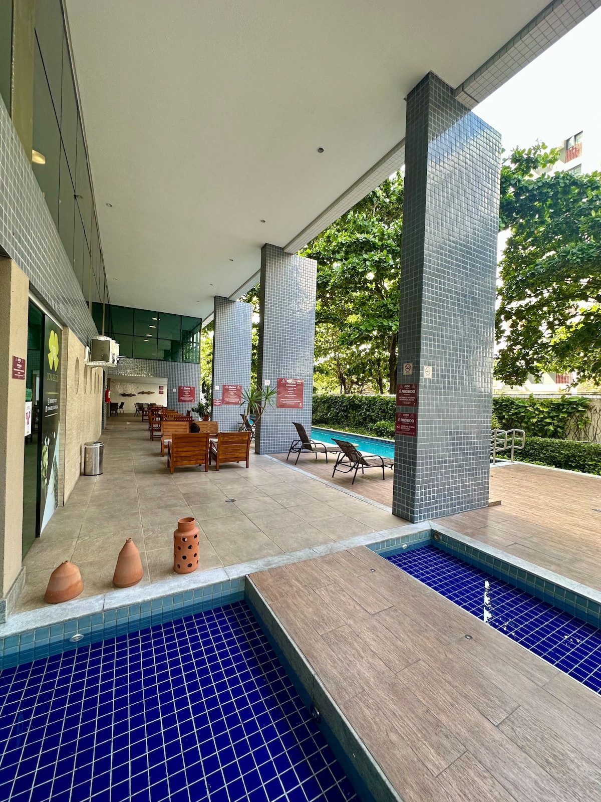 Localizado no Beach Class Convetion by HÔM, este lindo apto de 01 suíte é totalmente mobiliado/equipado/decorado fica próximo ao shopping Recife, praia de Boa Vigem e a 10 min. de carro do aeroporto. Possui estrutura de hotel com recepção 24 hrs, restaurante e café da manhã disponível (custo extra) piscina, sauna, salão de beleza e garagem. A hospedagem também está prox. a bares e restaurantes, além de ter todo conforto que você precisa para uma experiência magnífica neste espaço!