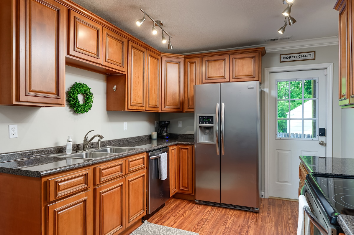 Dobrodošli v Chattanoogi! Uživajte v elegantnem in prijetnem doživetju v tem prenočišču v središču mesta. Do restavracij in znamenitosti NorthShore in središča Chattanooge se lahko sprehodite peš. Pogled na znameniti most Walnut Street in akvarij Chattanooga z verande. Sprostite se okoli ognjišča. Veliko, popolnoma ograjeno dvorišče. Počutite se kot doma v tem udobnem bungalovu North Chattanooga.