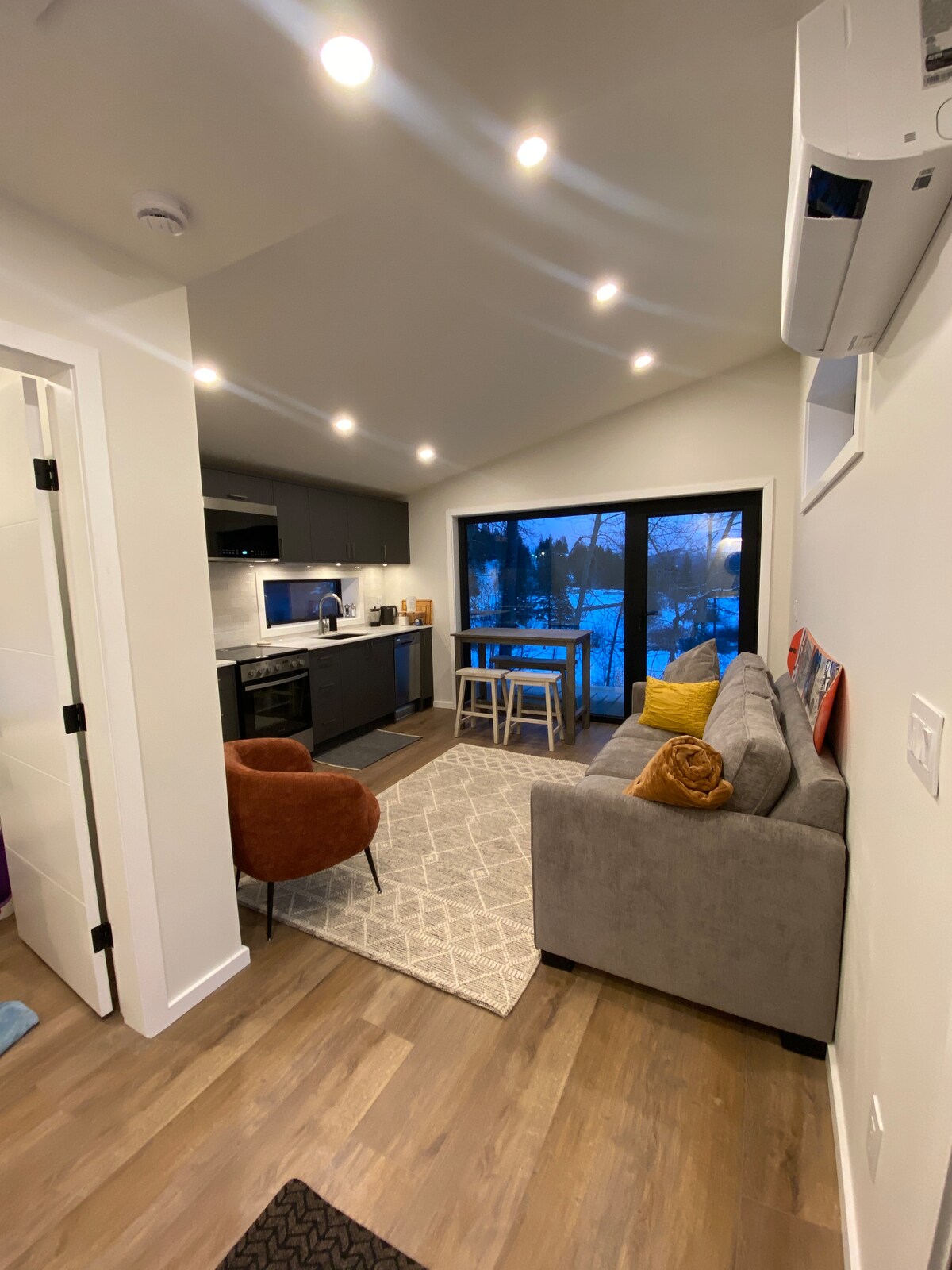 Enjoy modern luxury at Red Mountain in this brand-new, Scandinavian-inspired one-bedroom suite. Thoughtfully designed with custom cabinetry and minimalist details, it offers a full kitchen, a spa-like walk-in shower, Netflix, and coffee. Relax in the hot tub after hiking or biking the nearby trails (10-min walk to Red). Bike storage available on request. Ideal for short visits or extended stays, blending style, comfort, and adventure.