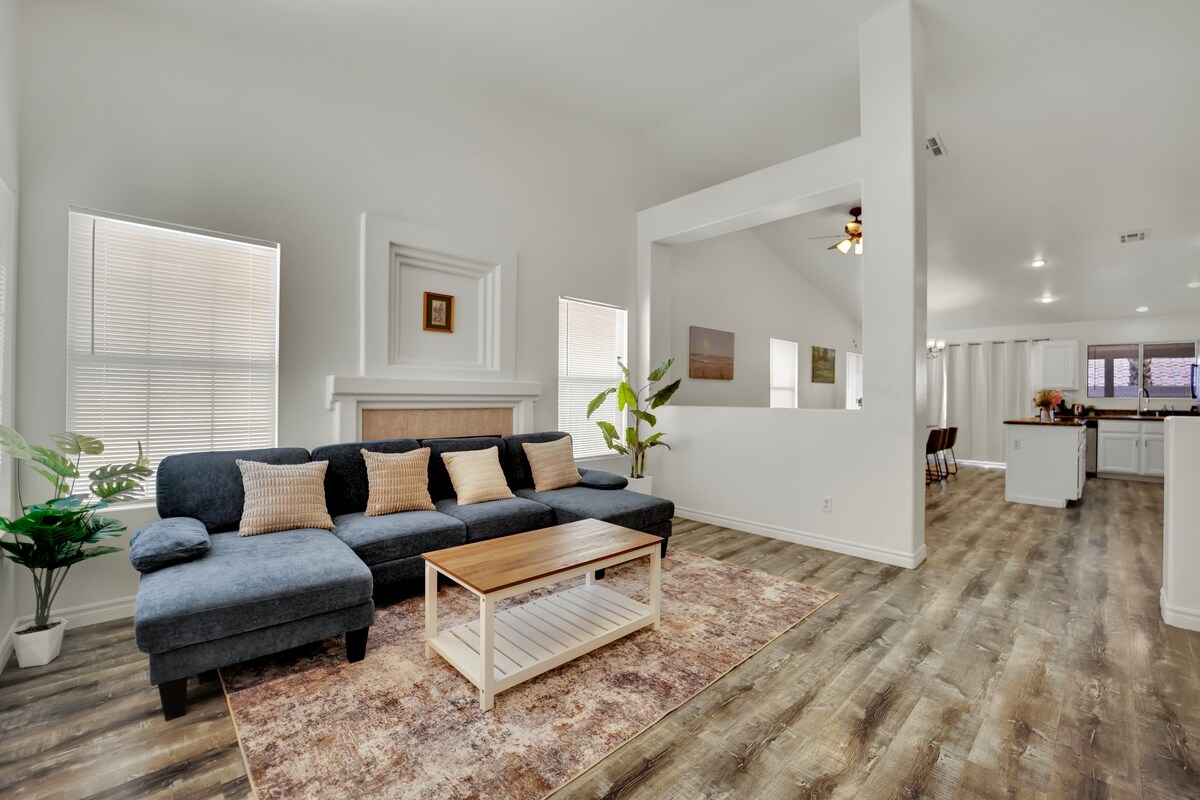 ✨ Dobrodošli v svojem sodobnem družinskem prenočišču 2BR, 2BA! Uživajte v zasebnem bazenu, sproščujočem spa centru in mini gledališki sobi za prijetne filmske večere. Popolnoma opremljena kuhinja olajša obroke, medtem ko televizorji, igre in igrače zabavajo vse. To prenočišče je elegantno in otrokom prijazno - kot nalašč za sprostitev, igro in ustvarjanje spominov skupaj. Zabave, dogodki, predigre, povračila ali kakršnekoli druge oblike druženj niso dovoljeni. Ponosen sem, da sem imetnik dovoljenja za kratkotrajni zakup.