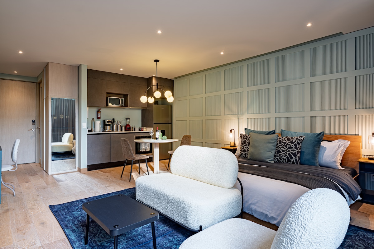 Naša stanovanja v Roma Norteju so zasnovana tako, da se lahko spočijete, dobite navdih in se povežete z eno najbolj živahnih sosesk v Ciudad de Méxicu. Za te prostore smo prinesli majhen košček Oaxace z glinenimi detajli in sodelovanjem z umetniki, kot sta Carlos Guerrero in Fernando Ochoa, ki naše stene polnijo z zgodovino in barvami. Najboljši del? Na strehi so stenske poslikave, ki pripovedujejo zgodbo med Xolosom in popotniki.