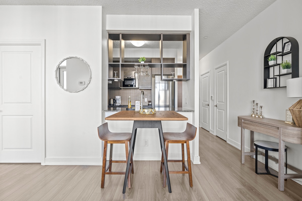 Enjoy a comfortable stay in this modern 2-bedroom, 2-bath condo on a high floor with stunning city views. Bright and thoughtfully furnished, the space features a fully equipped kitchen, cozy living area, and large windows showcasing the skyline day and night. Conveniently located near transit, dining, and shopping, this high-rise home offers the perfect combination of comfort, views, and city access for a memorable stay.