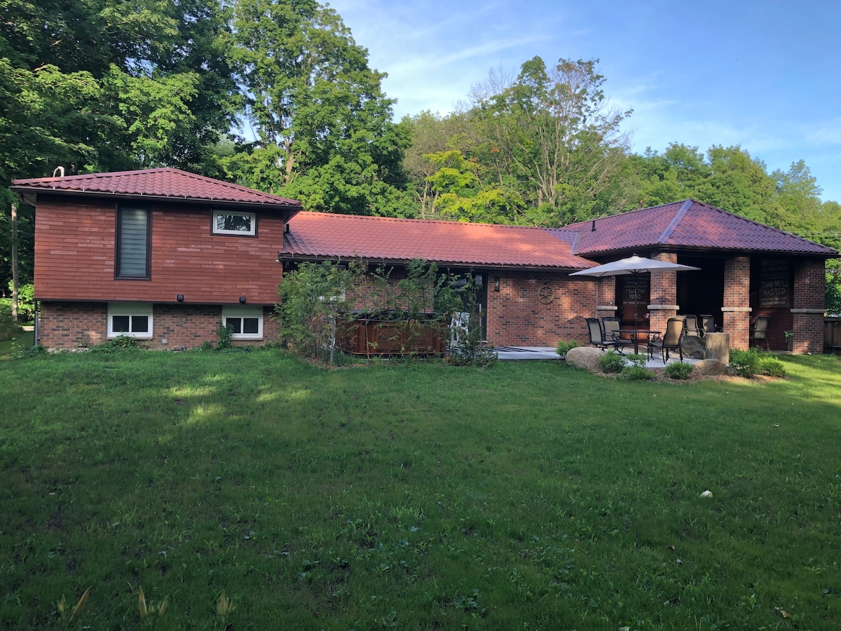 NOVO!!: na voljo je sezonski ali mesečni zakup. Če želite prejeti točno ceno, se obrnite neposredno name. Hvala Naša hiška na deželi je oddaljena približno 800 m od plaže v družinam prijaznem parku Innisfil Beach Park! Kuhinja je sodobna in svetla z veliko prostora za sproščanje v hiški na deželi ali zabavo zunaj na velikem dvorišču z ognjiščem. Naša hiška na deželi je idealna za pare in družine. Čudovito je opremljen. Na voljo so žar, vrtno pohištvo in ognjišče, pametna televizija z Rokujem in Chromecastom.