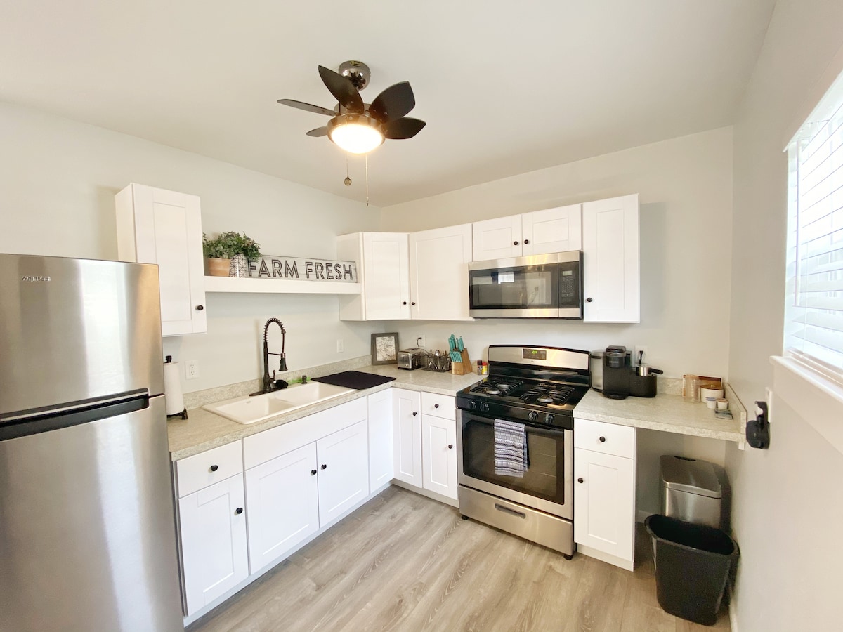 Pet Friendly, monthly rates available. Farmhouse-inspired studio apartment just minutes from the beach, close to outlets, movies, the Breakwater Junction trail, breweries, and tons of restaurants and entertainment. Take a quick bike ride to Cape Henlopen or save time and money on parking meters with a bus stop just down the street. As a seasoned Airbnb Superhost, I'd like to give you the best experience possible when staying with us. .07 Miles to the Breakwater Trail - 4 minutes on a Bike