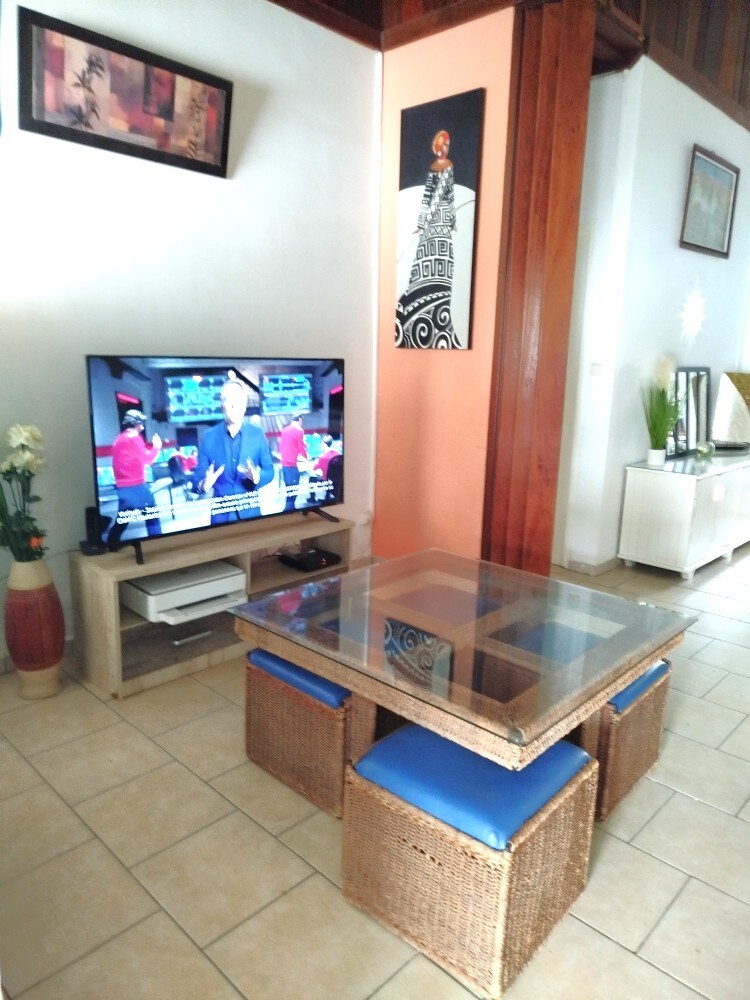 Čudovita 3-sobna lesena hiša v mirnem stanovanjskem območju. Hiša se nahaja sredi gozdnega vrta, ki meri 4000 m2, z zasebnim bazenom, na robu državnega gozda Mont Matoury. Hiša se kljub temu dobro nahaja, saj je na: - 5 min od trgovskih centrov, kinematografov. - 15 minut od središča mesta Cayenne. - 15 minut od letališča. - 5 minut do prve plaže Tam boste v miru, stran od prometnih zastojev in v osrčju narave. Dobrodošel, Sylvain.