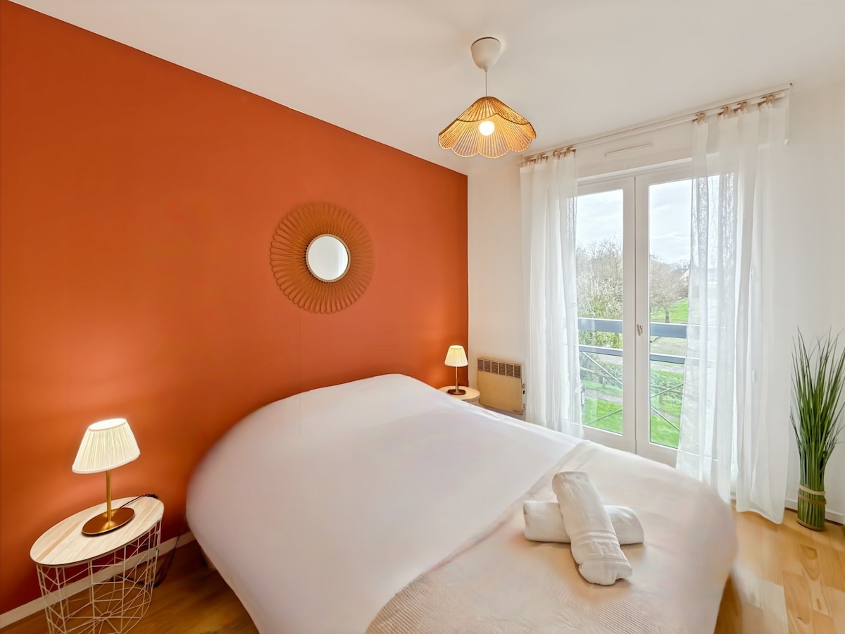 Odkrijte to vrhunsko stanovanje v zgornjem nadstropju z balkonom, balneo kadjo in kromoterapijo za sproščujoče bivanje. Ta prefinjeni prostor se nahaja v osrčju Rennesa in ponuja izjemno posteljnino, popolnoma opremljeno kuhinjo in svetlo dnevno sobo z velikim zaslonom OLED, ki vsebuje veliko število kanalov, serij in filmov v vseh jezikih. Na voljo so pomaranče, čaj in kava. Uživajte v edinstvenem trenutku, zagotovljena topla dobrodošlica!!!
