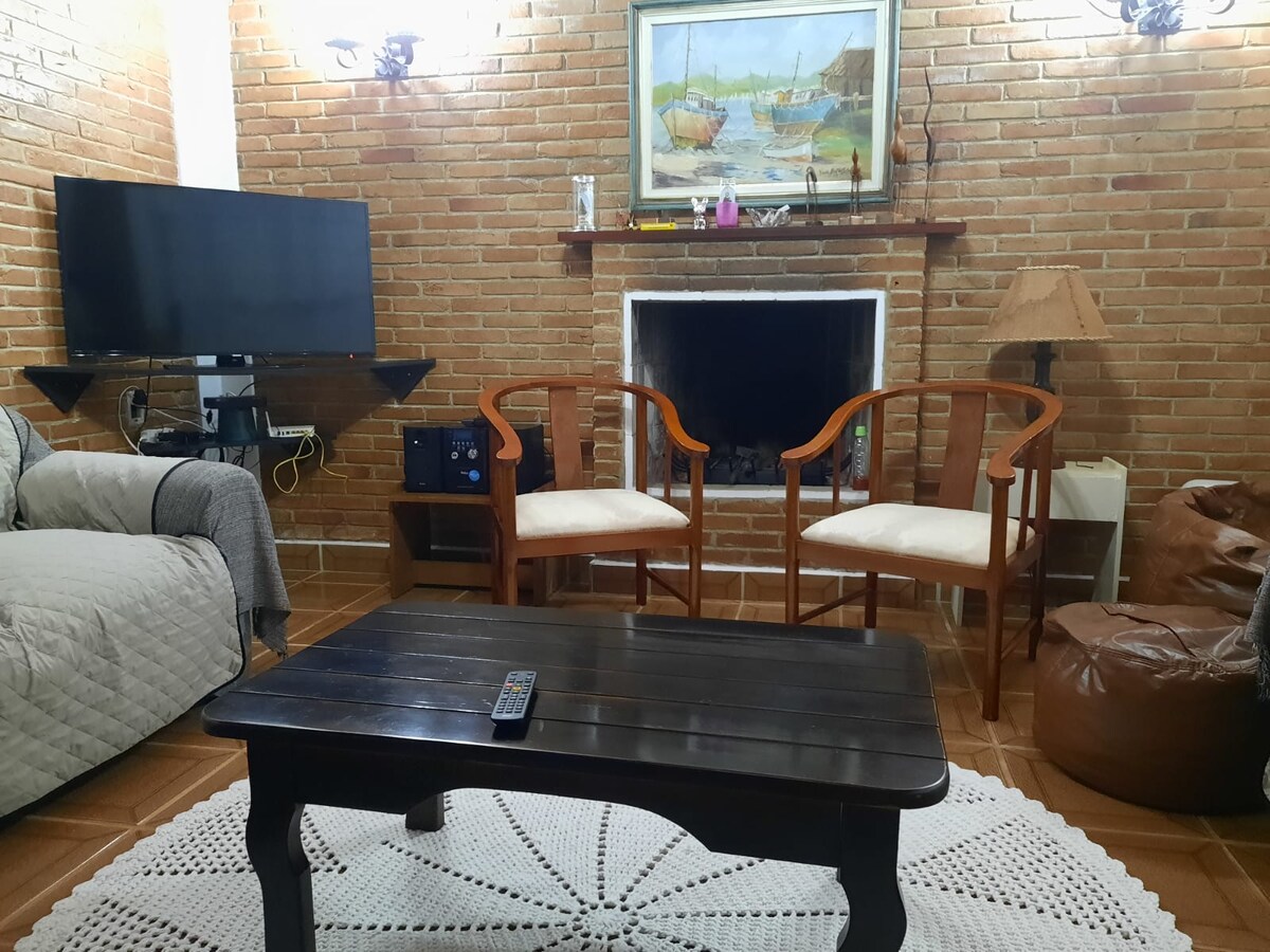 Condominium de Chácaras in Piracaia. DRUŽINSKO VZDUŠJE za počitek. Piracaia je v bližini Atibaia( 17 km) in Joanopolis Cachoeira dos Pretos( 25 km) Opečnata hiša s pogledom in steklo sredi vrtov, žar, bazen, terasa in sadovnjak. Spodaj so 3 spalnice, dve dnevni sobi, shramba, kuhinja in pisarna. Zgoraj sta dve kopalnici z balkoni, TV prostor z Netflixom,nebom, globoplayom, Amazonom in mesaninom za branje in uživanje v razgledu.