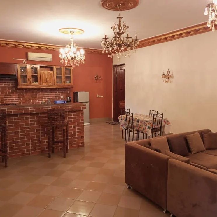 Nono Auberge ponuja sezonski najem med tednom, vikendom ali mesecem; z 2 spalnicama, vključno z eno z eno posteljo, kopalnico (vključena topla voda), z WC-jem, dnevno sobo (miza za 6 oseb), popolnoma opremljeno kuhinjo in teraso. Klimatska naprava in skrbnik sta vključena Izkoristite to parcelo sami. Ps: ni rezanja vode ali elektrike, saj je na voljo vrtina in generator. Nedaleč od središča mesta se nahaja Quartier Château d 'Eau (Brazzaville).