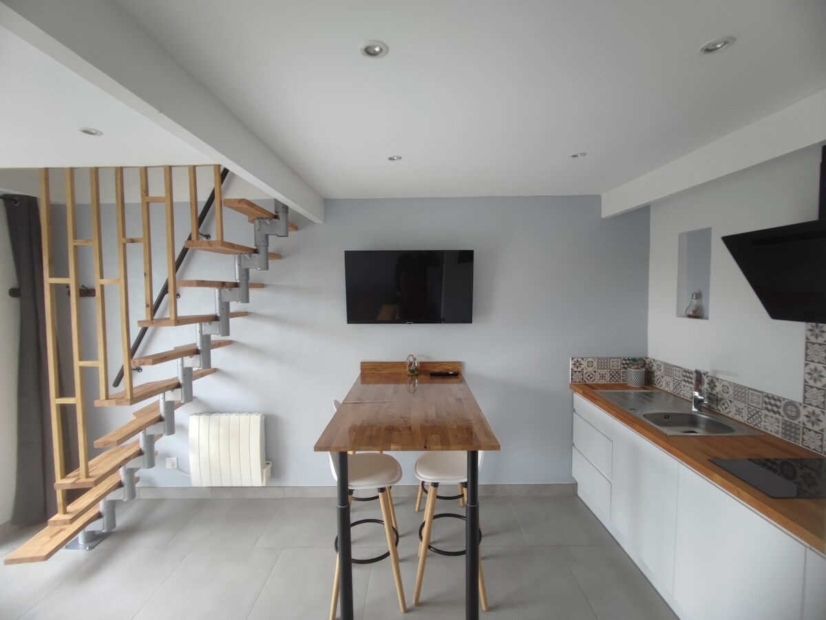 Očarljiv dupleks na podeželju, ki se nahaja v osrčju gozda. Blizu 24-urnega kroga, živalskega vrta La Flèche. - opremljena kuhinja, dnevna soba, kopalnica s prho, straniščem in masažno kadjo, spalni prostor z velikim zaslonom in zvočnim barom. Zasebno in zunanje parkirišče je urejeno, ne da bi bilo obrnjeno na ulico, da uživate v miru in naravi. Ne glede na to, ali ste par, sami ali na poslovnem potovanju, ta dupleks združuje udobje, sodobnost in dobro počutje za nepozabno bivanje. Primerno za mirno in osvežujoče bivanje.