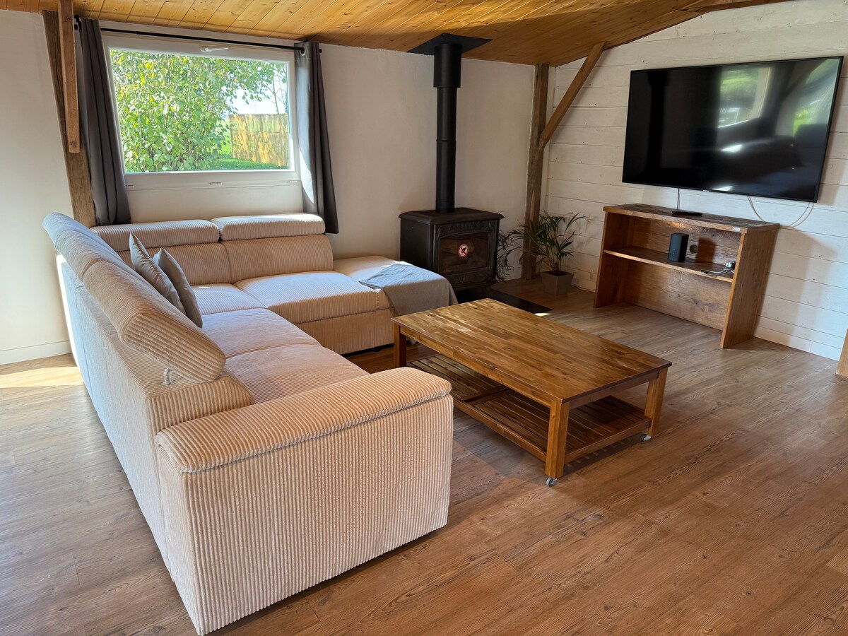 Vrhunsko prenočišče z Balnéom in savno – Bruz, v bližini Rennesa Privoščite si sproščujoč oddih v tem čudovitem sodobnem prenočišču s površino 60 m² za dva Vse udobje: • popolnoma opremljena sodobna popolnoma opremljena kuhinja • Suita z veliko zakonsko posteljo (180x200), vrhunsko posteljnino • kopalnica z balneom, savno in prho • dva povezana televizorja • vhod z omaro • terasa in vrt Vse gospodinjsko perilo je na voljo (brisače, halje itd.)