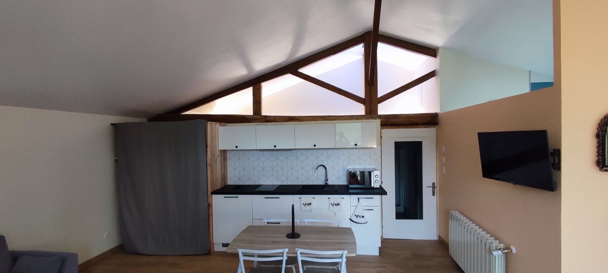 20 minut od Lyona je majhno stanovanje velikosti 34 m2 v pritličju mirne vile. Zasebni prostor v najemu: ena spalnica z zakonsko posteljo 160 cm, en raztegljiv kavč, kuhinja (hladilnik, mikrovalovna pečica, indukcijska kuhalna plošča za kavo,TV, Wi-Fi), kopalnica in stranišče . Ločena vhodna vrata. Zasenčen vrt. 5-minutna pekarna, picerija, restavracija, frizer, B-tobac, lekarna. Avtocesta A7 je oddaljena 15 minut, po potrebi pa tudi varno parkiranje. Prihod od 17.00/odhod ob 11.00 (ob predložitvi osebne izkaznice)