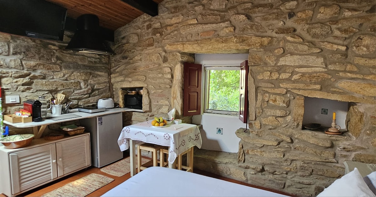 Z zasebnim in neodvisnim dostopom med bivanjem so gostom na voljo 3 sobe: ena z zakonsko posteljo, ena z 2 posteljama in druga z enojno posteljo, 2 kopalnici, kuhinja (s hladilnikom, pečico, kuhalno ploščo in mikrovalovno pečico), terasa, pralnica in dnevna soba. Skupni prostor je 135 m2. Od zadnjih oken (dnevna soba in kuhinja-jedilnica) lahko uživate v razgledu na reko Miño in Portugalsko.