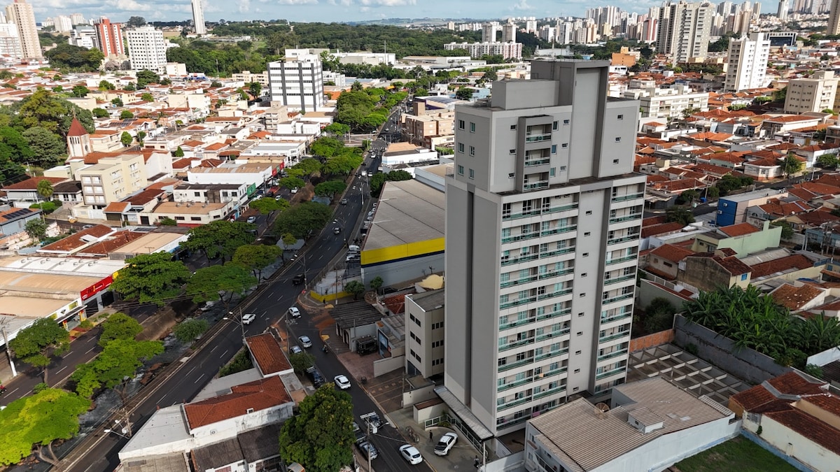 New and modern studio apartment located in a prime region of Ribeirao Preto , it has Wi-Fi , air conditioning , full kitchen, 40’smart TV, BlueFit Academy in the building , Air Fryer , garage space and complete leisure area, pool , sauna , game room, gourmet space, coworking space for work , 24-urni home market and the best location in the city , on Avenida Presidente Vargas 3 minutes from Ribeirão shopping and near to Ribeirão' s best parks , bars and restaurants.