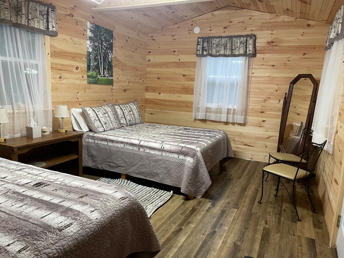 Cottontail Cabin, ugnezden na 22 hektarjih mirnega gozda! To je popoln oddih za tiste, ki iščejo sproščujoč in pomlajevalni oddih v osrčju narave. Koča je popolnoma opremljena z vso opremo, ki jo potrebujete, da bo vaše bivanje udobno in prijetno. Koča z 2 spalnicama in raztegljivim kavčem lahko sprejme do 6 gostov. Koča ima umazano ogrevanje in peč na drva, da vam bo toplo in udobno. Imamo masažno kad v polni velikosti in savno na drva!
