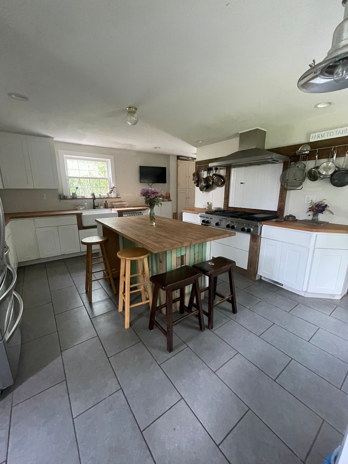 Naša svetla kmečka hiša v okrožju Upper Bucks združuje rustikalnost in razkošje. Naša kmečka hiša iz 19. stoletja izžareva zemeljski in topel čar s pridihom sodobne elegance. Naša kmečka hiša stoji na 26 akrih delujoče kmetije, ki vključuje tudi naš vinograd in vinsko klet. Zgodaj zjutraj uživajte v mirnem okolju s svojo najljubšo kavo s terase ali terase. Ponoči opazujte zvezde ob zvokih prasketajočega ognja in kozarcu vina. Pokušine vina so na voljo na zahtevo.