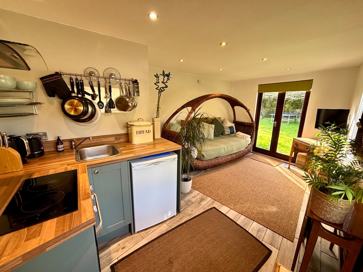Gostje imajo izključno uporabo sodobnega namena, ki je zgrajen v sklopu ograjene hiše na zasebnem posestvu. Skupaj s talno ogrevanje, mehčalnikom za vodo, opremljeno kuhinjo s pralnim/sušilnim strojem ter uporabo spodnjih teras in vrtov okoli glavne hiše, ki ima veličasten razgled na reko Avon do novega gozda. Imamo ribolovne pravice do reke na dnu vrta za vse navdušene ribiče. Uporabljajo se groba ribiška pravila, zaprta sezona 15/3-15/6.