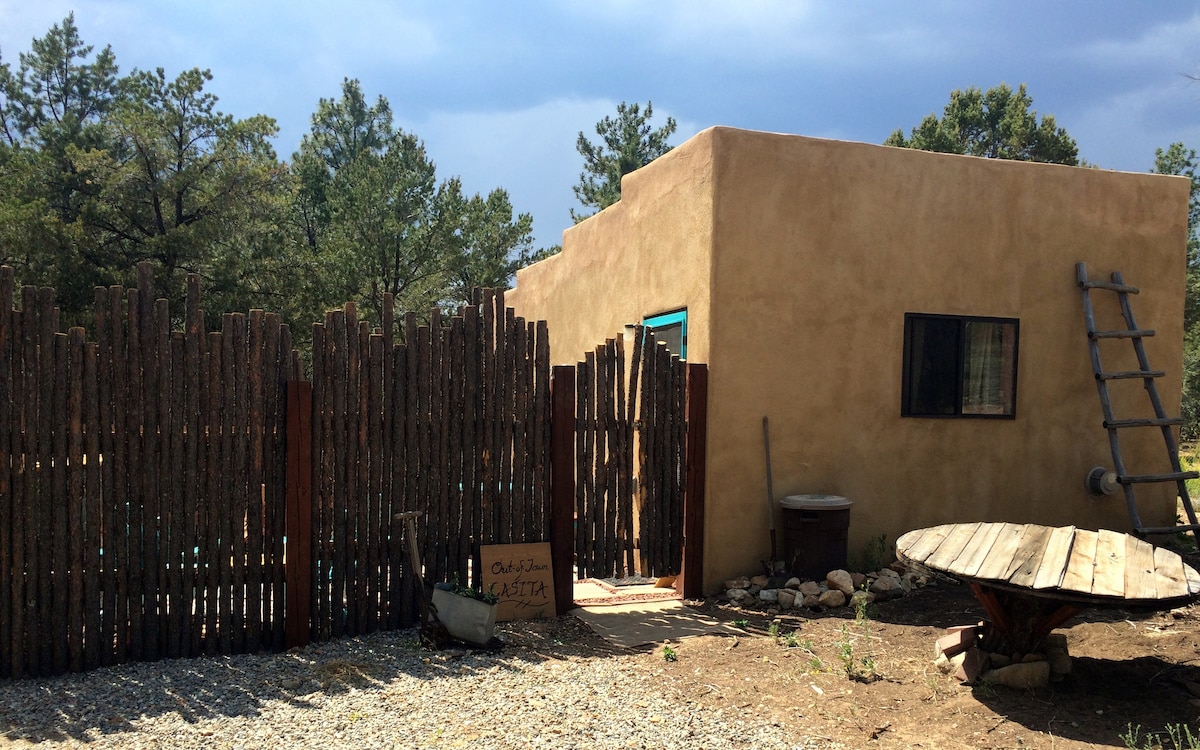 The best views in Taos--mountains all around. A truly private and impossibly romantic getaway. Traditional adobe casita with vigas and latillas, on a paved road, at the edge of the mesa overlooking town. Only three miles to the Plaza, easy access to Taos Ski Valley, the Rio Grande Gorge, Ranchos, and the road to Santa Fe. Speedy fiber optic internet for digital nomads. Sunrises and sunsets are spectacular. We offer a great experience--just look at all the wonderful reviews by our awesome guests!