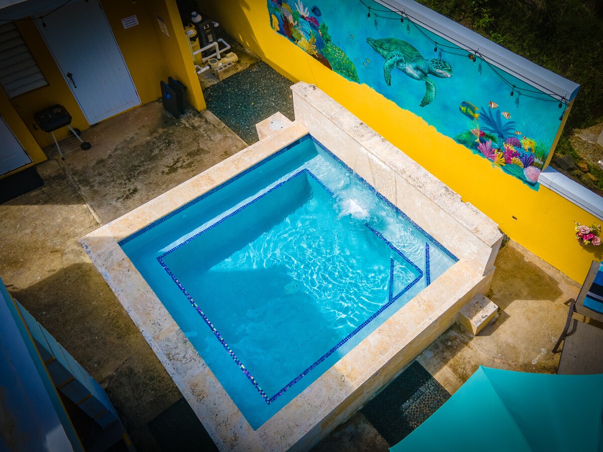 🚨SJU✈️40 min/💦 Casa completa con jacuzzi privado con una increíble vista hacia el yunque y el mar. Amarás los amaneceres y atardeceres de ese lugar, a 45 min del yunque, cerca del Charco el Hippie 15 min en carro, 10 min- Bacoa Restaurant, 15 min- Malecón Naguabo 25 min de ceiba ferry terminal ⛴️ 20 min base de ceiba Roosevelt Roads Fajardo. Ven a cambiar el ruido de la ciudad por la naturaleza. Perfecto para luna de miel, y/o trabajos remotos. Solo adultos /18+ se hacen excepciones….