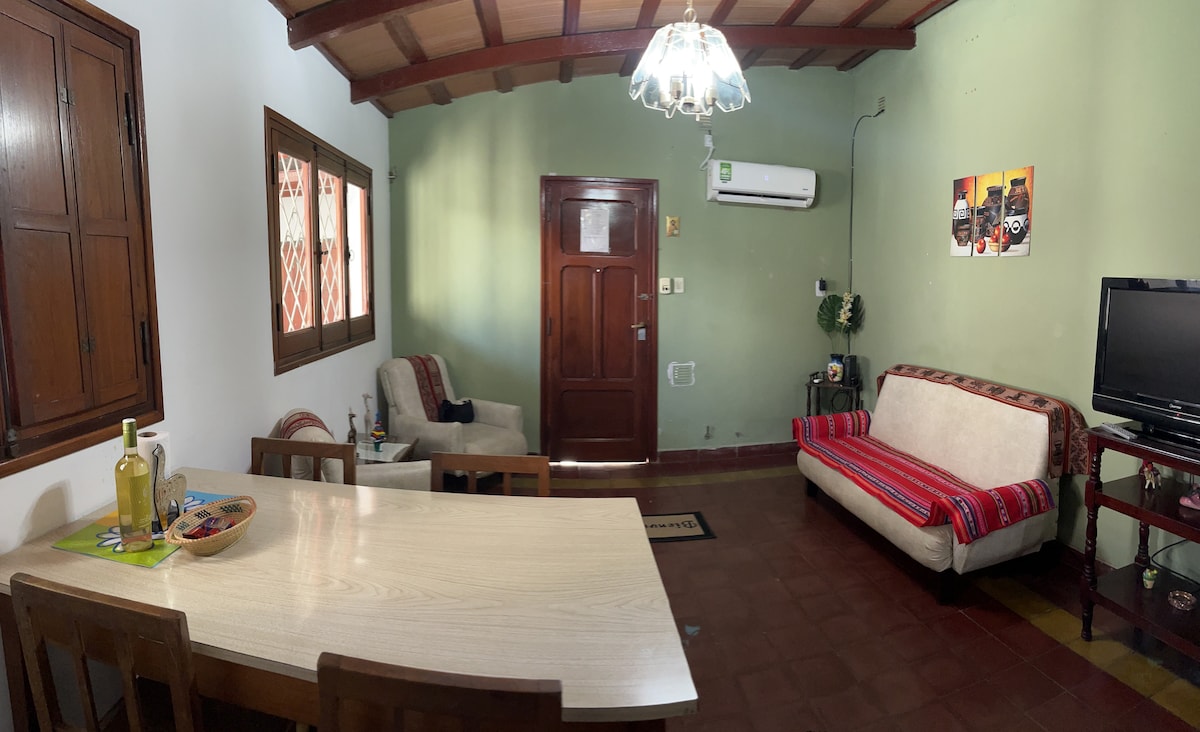 Uživajte v tem mirnem prenočišču. Hiša se nahaja na posestvu s kmetijo in pridelki, na podeželju, obdanem s hribi, z bližnjimi in lahko dostopnimi tržnicami, na asfaltirani poti, na poti do doline Calchaquíes, 20 minut od središča Salte. Ima dnevno sobo, dnevno sobo, kuhinjo, opremljeno z vsem, kar potrebujete, veliko galerijo z žarom in bazen na velikem vrtu z drevesi. Ima internet, dobro WI-FI povezavo, TV in ogrevanje na drva.