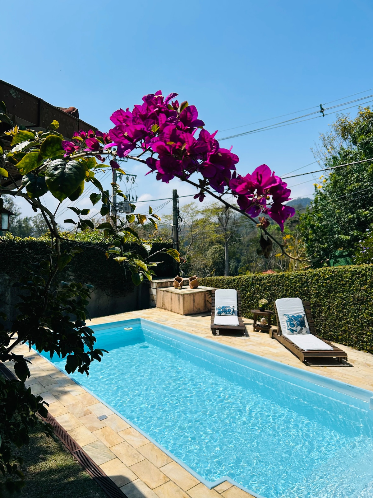 Velika in udobna hiša sredi atlantskega gozda, s potokom, pogledom na gore in super mirno. Kot nalašč za družinske trenutke in ponovno povezovanje. 10 minut od središča mesta Itaipava in enostaven dostop. Prostor Hiša ima notranji in zunanji kamin, suita ima zakonsko posteljo, TV 50 palcev, topel in hladen zrak. Viseče mreže, pergola, žar in prha naredijo prostor za prosti čas zelo prijeten.