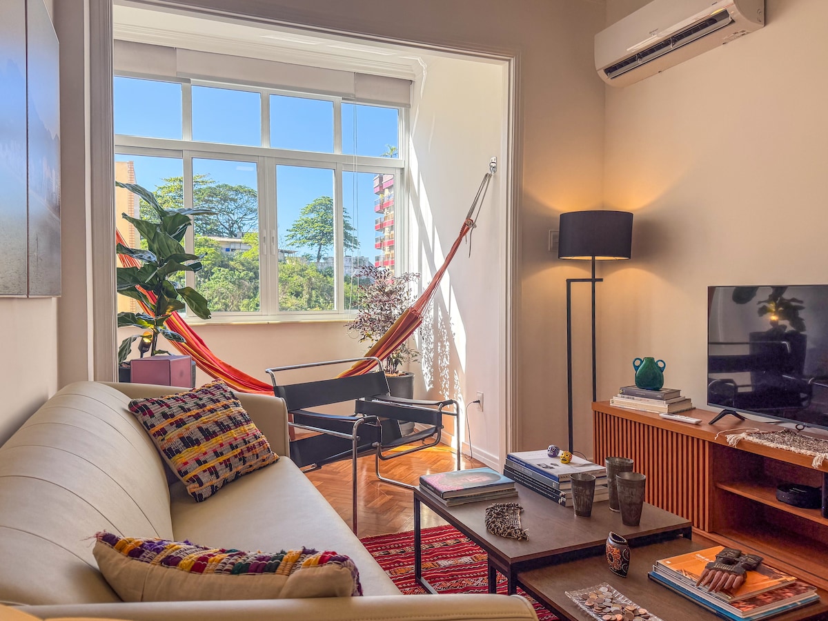 Stanovanje je bilo v celoti prenovljeno, nahaja se v najboljši soseski v Riu, le eno ulico od plaže, eno ulico od nakupovalnega središča, bližnji teather, restavracije, postaja podzemne železnice, kolesarska postaja V zelo kul stavbi iz 60. let prejšnjega stoletja, s katero se sooča, je zgodovinska dediščina, v notranjosti pa je bil tloris popolnoma spremenjen, da bi lahko ponudili odprte in integrirane prostore z veliko naravne svetlobe. S kakovostnim pohištvom, novimi napravami, kakovostnimi bombažnimi rjuhami in brisačami. 100% LGBTTQIA+ prijazno
