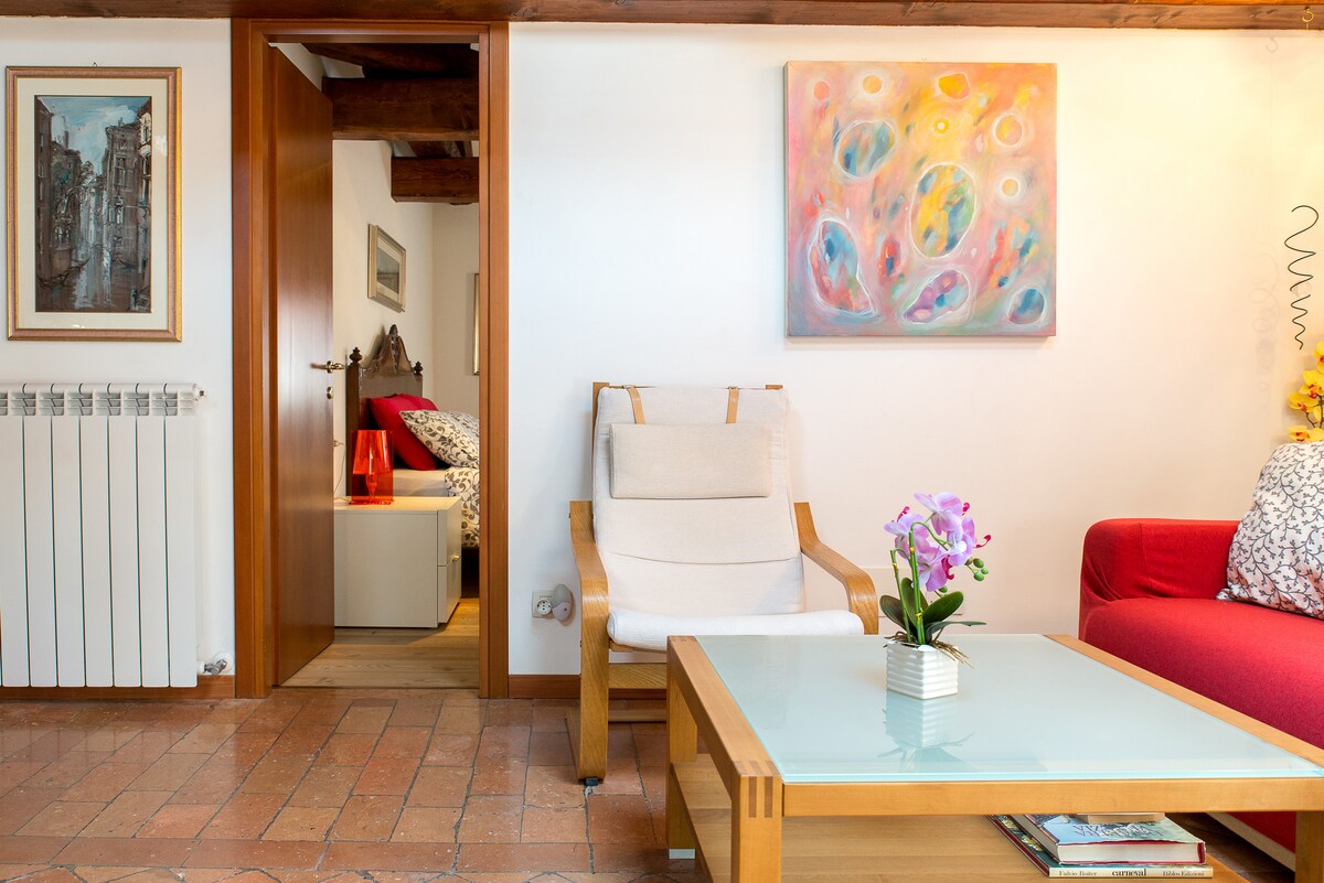 (CIN-National Identification Code: IT027042C2558RPPOW - CIR-Regional Identification Code: 027042-LOC-01844 - A.P.E- Identification code n°95942/2021) A dream place created by a choreographer and an engineer working in aviation with a passion for art. Lovely studio apartment perfect for a romantic stay in Venice. Just renewed, 10min walk from Rialto Bridge and train station, super close to everything but still in a quiet, original area of the city.