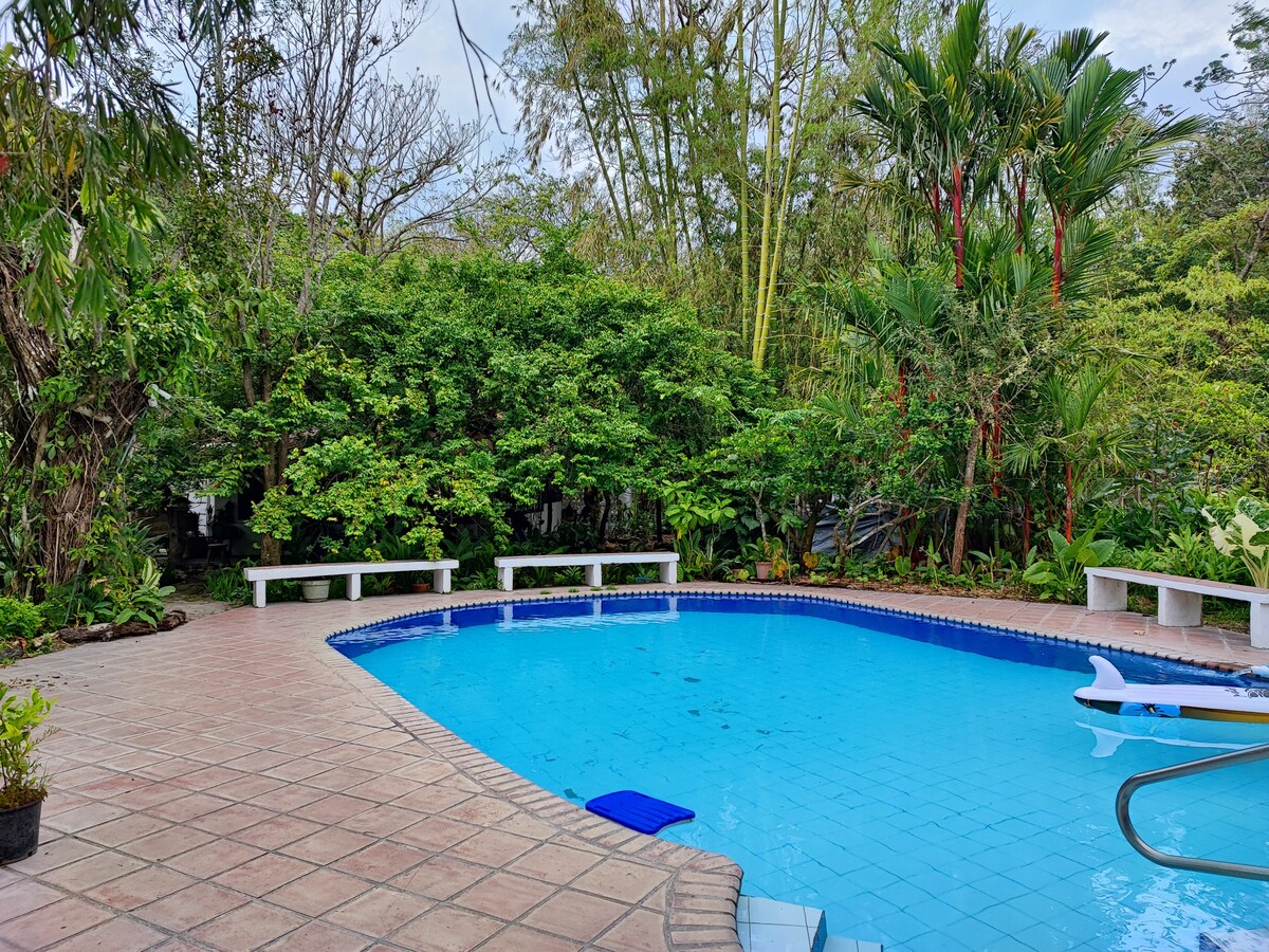 Rest in your space of nature and relaxation. We offer accommodation with three king beds and six additional ones, all orthopedic, for up to 9 guests. Enjoy our thermal water pool in a botanical garden, perfect for bird watching. Gardens with 33 species of tropical trees and 45 species of birds. Relax in hammocks and explore natural trails. Just steps from the main street, close to restaurants and shops. Come and live a unique experience of tranquility and beauty.