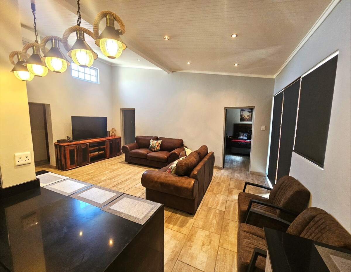 Kick back and relax in this calm, stylish space. Located in a safe neighbourhood just 500m from Gariep Medi Clinic.We invite guests to come and experience top class hospitality and luxury.
