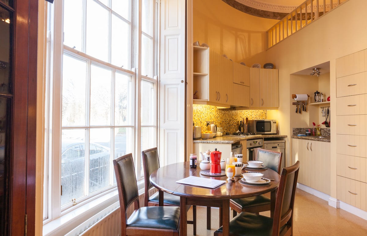 Doživite pristno georgijansko eleganco je to edinstveno veliko OVALNO garsonjero s pogledom na park. Sprejme dve osebi v udobnem spalnem predelanem stanovanju. Skuhajte večerjo v dobro imenovani ( vaš gostitelj je nekdanji kuhar..) oblikovalec kuhinji, nato pa se odpravite na uživanje v znamenitosti mesta.
