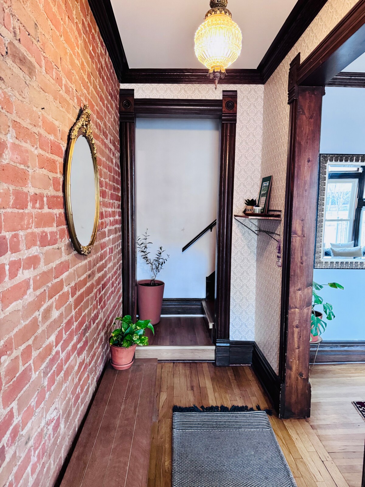 Viktorijanska opečnata dvorec iz leta 1886, posodobljena s sodobnim udobjem in slogom. Ta enota je dvojni mojster, ki se razteza v dveh nadstropjih z glavno suito spodaj, vključno s kadjo z masažno kadjo in prho ter še eno glavno suito zgoraj z masažno kadjo in prho z razgledom. Na voljo sta tudi dva kavča z zakonsko posteljo in vzmetnicami iz spominske pene. Televizorja imata naročnine na Netflix in Roku za druge oddaje. Brezžična povezava hitro kriči. Na voljo je zasebna terasa skozi francoska vrata s pogledom na obzorje.