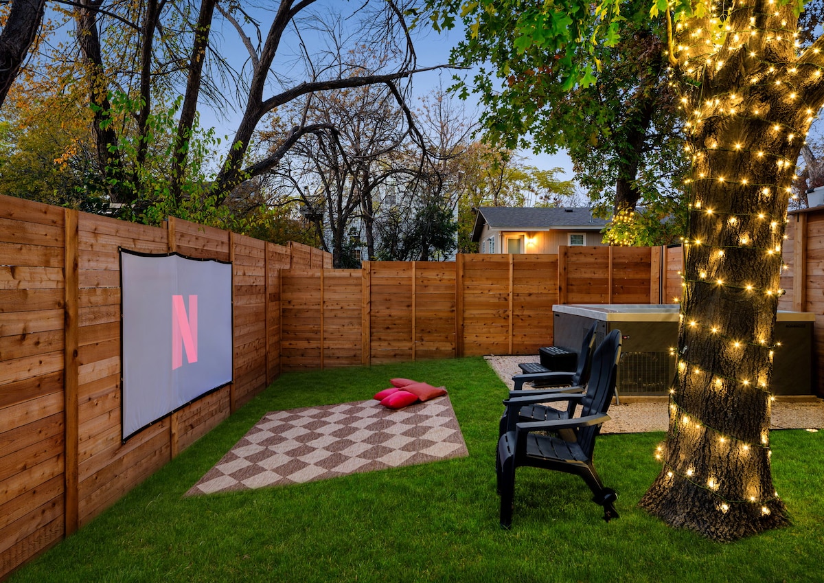 Dobrodošli v skriti oazi v osrčju vzhodnega dela Austina. Prenočišče se nahaja v mirni slepi ulici in je popolno ravnovesje zasebnosti, varnosti in spokojnosti. S prenovljenim dvoriščem z ogrevanim bazenom (do 39 °C), ki lahko sprejme 12 odraslih, je to prenočišče popolno za uživanje v nepozabni naravi Austina. Le nekaj korakov stran od živahne ulice E 6th Street boste imeli hiter in enostaven dostop do vsega, kar ponuja to neverjetno mesto. **12 minut vožnje do letališča AUS