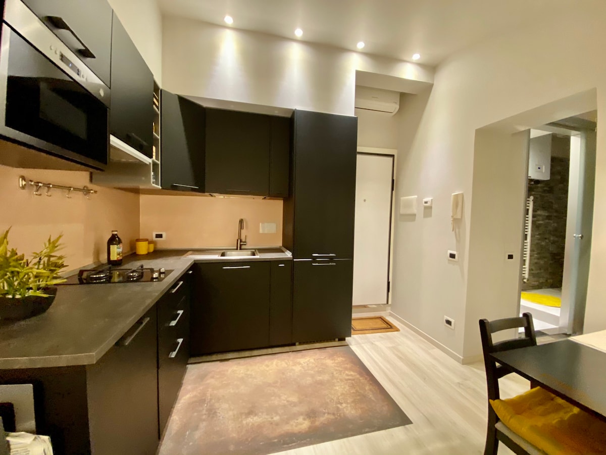 Klimatizirano stanovanje, 40 m2 z mezzaninom, ki se nahaja v pritličju enonadstropne stavbe v teku, s pogledom na zasebno teraso 12 m2, popolnoma prenovljeno in opremljeno s kakovostnimi storitvami. Dostop do podstrešja vključuje prehod skozi hodnik, do katerega dostopate po stopnicah, in spust 24 korakov, da se zberete v nastanitvi v absolutni mirni in svetlosti.