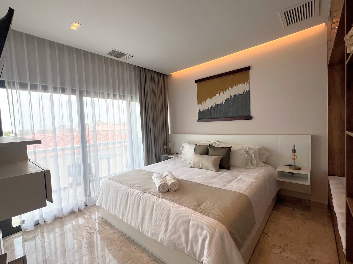 Nahaja se na najlepši ulici z drevesi v Playi del Carmen, z neverjetnimi kavarnami, bari, restavracijami, lokalnimi trgovinami in plažo. To edinstveno + sodobno enosobno stanovanje je blizu vsega, kar olajša načrtovanje vašega obiska. Čez dan se sprehodite do plaže, preživite večer na 5. aveniji ali pa preprosto uživajte v navtičnem stanovanju + zasebni terasi ali pa se odpravite na čudovito streho in uživajte v spektakularnem razgledu na morje, medtem ko uživate v baru in bazenu.