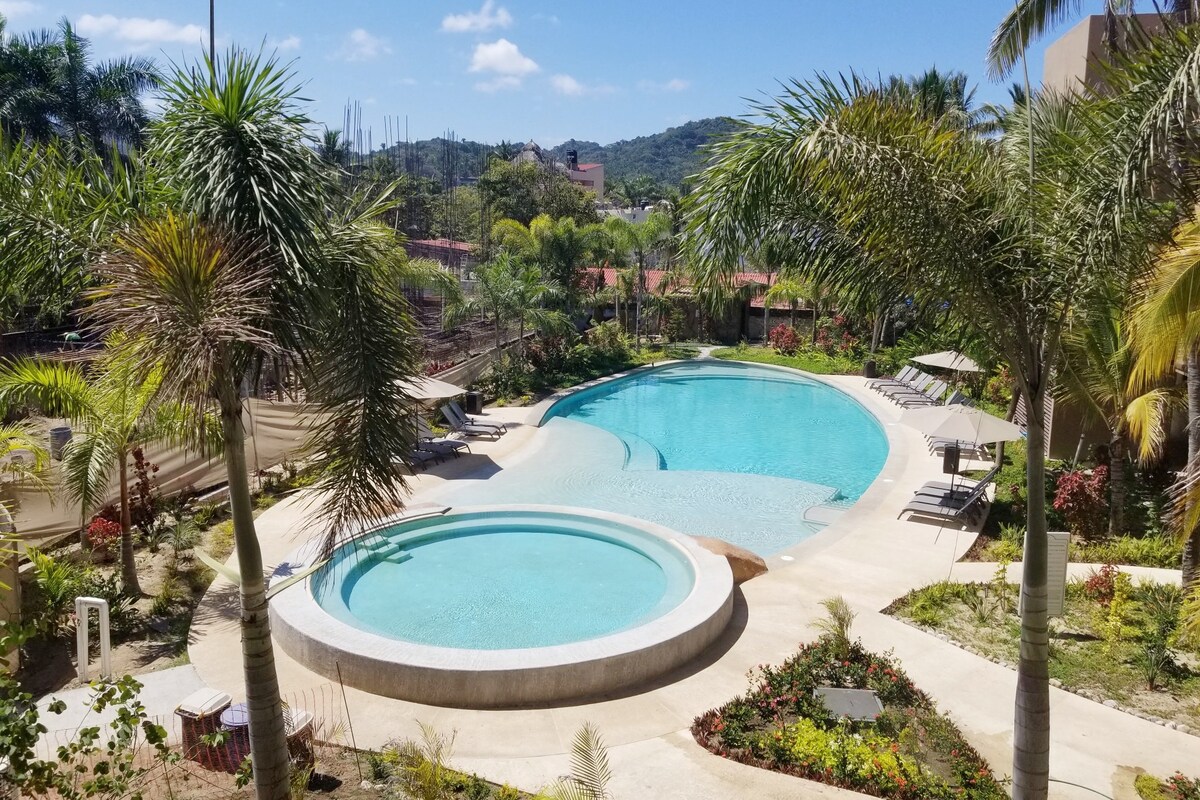 Čudovito in udobno stanovanje v osrčju mesta Sayulita. 2 spalnici in 2 kopalnici z veliko dnevno sobo in odprto teraso. Uživajte v skodelici kave na terasi s pogledom na bazen z gorskim razgledom, medtem ko se sproščate v viseči mreži. Prenočišče je 5 minut hoje stran od plaže in tik za vogalom od trga, kjer se nahajajo vsi bari , umetniške galerije in restavracije. Ena najboljših lokacij v Sayuliti! Enota se nahaja v ograjenem kompleksu in vključuje vaše parkirno mesto