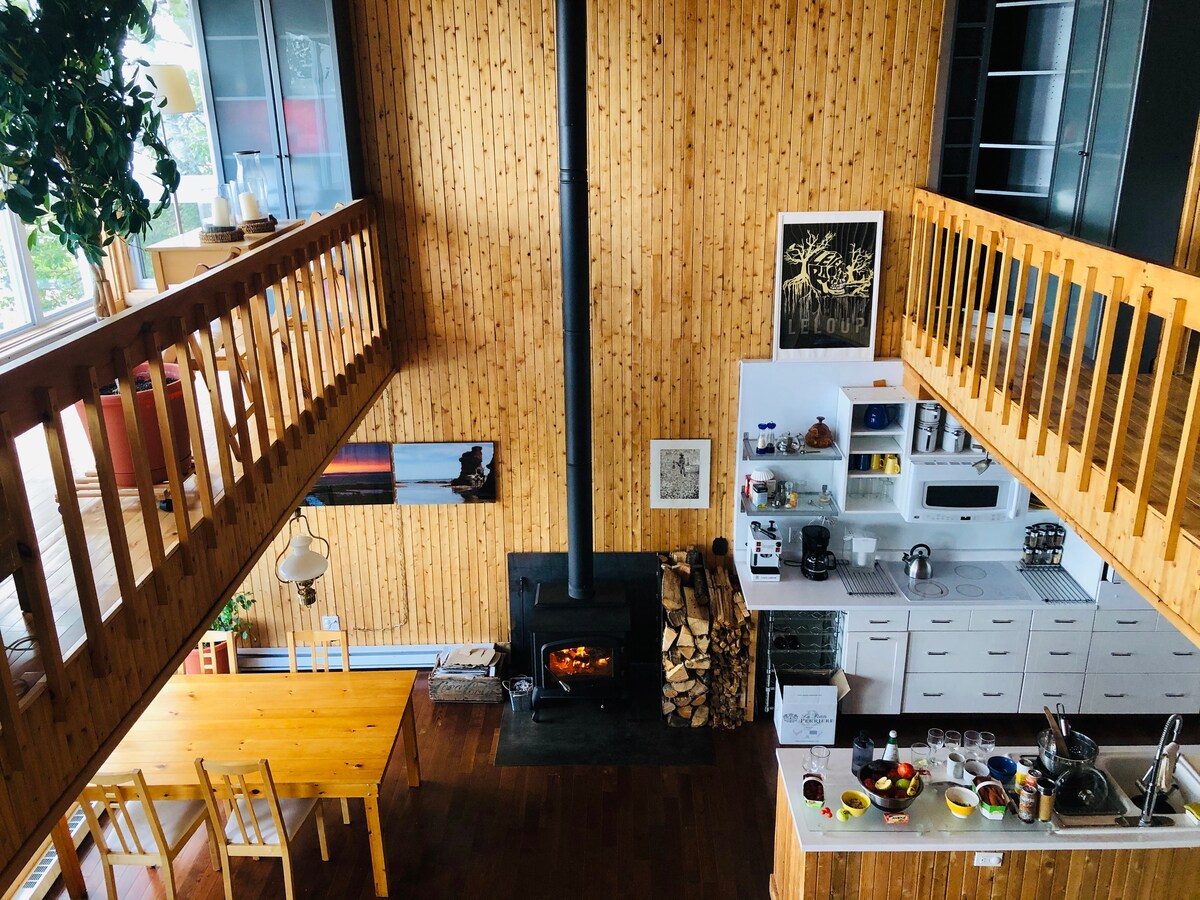 Petite maison en bord de mer chaleureuse. Les boiseries qui recouvrent son intérieur ne sont pas sans rappeler la nature qui l'entoure. Nichée à un lancer de roche du fleuve Saint-Laurent, il va sans dire que les couchers du soleil y sont exceptionnels. Bien que son confort vous rappellera la maison, la vue imprenable saura vous dépayser.