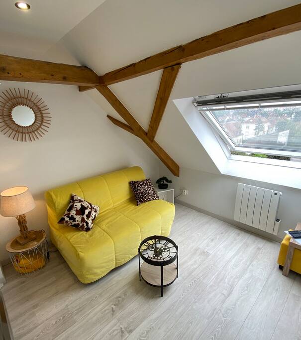 Pod streho je prostoren, svetel, tih in neodvisen prostor v drugem nadstropju hiše z značajem. Dva velika Véluxa vam ponujata osupljiv razgled na Vogeze. Najem vključuje glavno sobo, sosednjo spalnico z zakonsko posteljo, kopalnico, majhno kuhinjo in vmesni hodnik z 2 vzmetnicama na tatami. Obnova je bila opravljena z okolju prijaznimi materiali... in z veliko skrbnosti in ljubezni! V prostem času imate dostop do vrta.