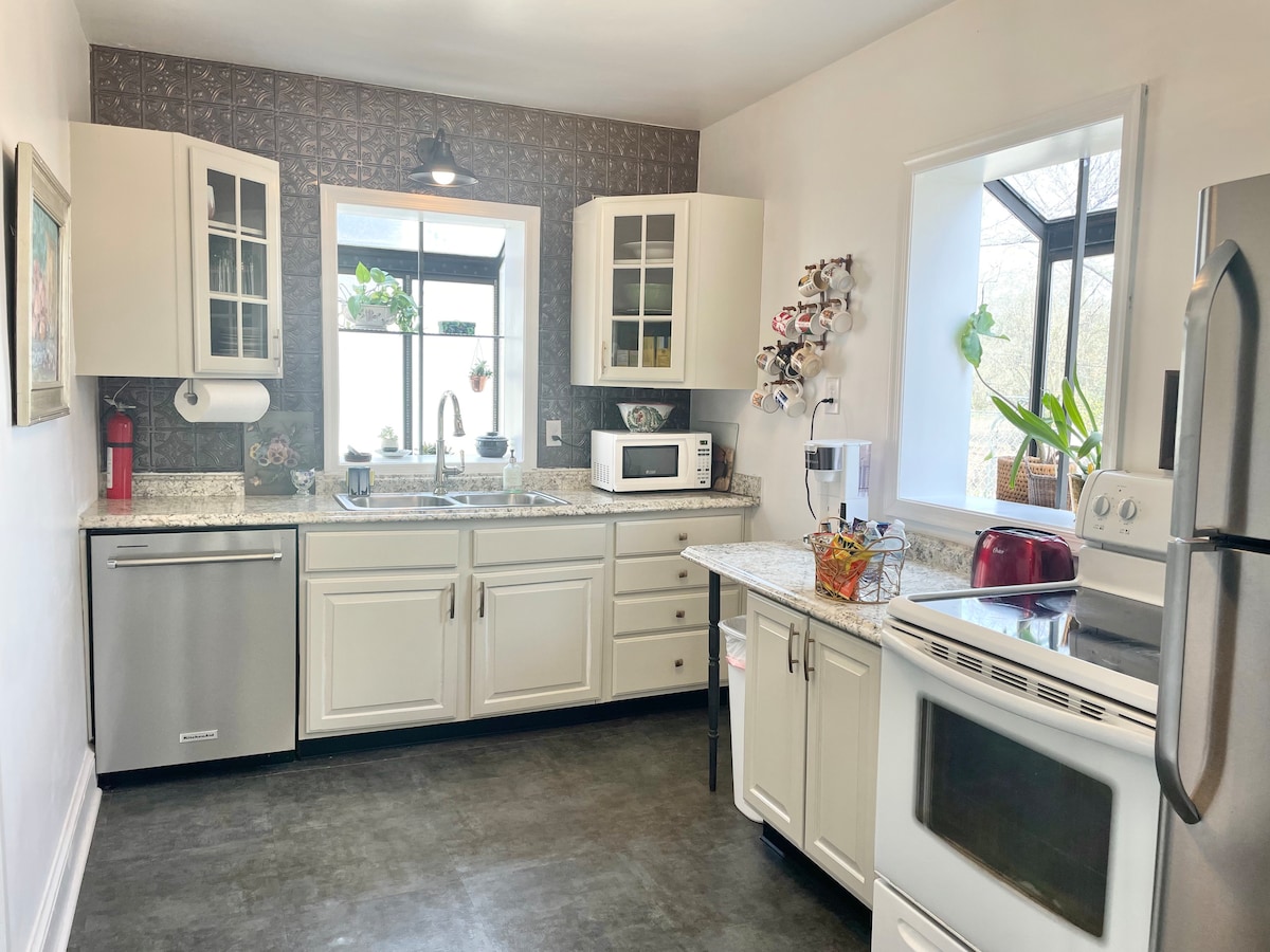 Sprostite se v tem edinstvenem in mirnem oddihu. Nahaja se le nekaj minut od središča Roanoka, Greenwaya, Grandina in reke Roanoke. Ta čudovita, na novo prenovljena namestitev ponuja granitne pulte, porcelanska tla, luči v kopalnici Bluetooth LED in LED pipo. Garsonjera z odprtim tlorisom. To prenočišče je resnično edinstven, sodoben dragulj! Če želite rezervirati, morate biti stari najmanj 21 let. Pred rezervacijo morate predložiti osebni dokument.