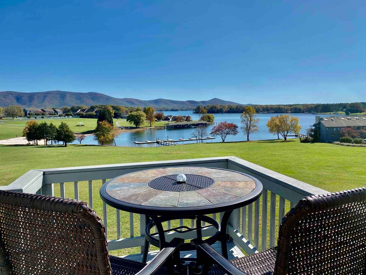 Fantastic getaway on beautiful Smith Mountain Lake! Enjoy stunning views on two sides of this top-floor, corner condo with a wrap-around deck and natural shade. It is perfect for a relaxing break or an adventure! Activities include boating (with guest docks), swimming (indoor and outdoor), pickle ball, working out, and relaxing in the hot tub, steam room or sauna! If you are working remotely, this quiet space includes a desk and high-speed wireless. The individual HVAC unit also has a UV light.