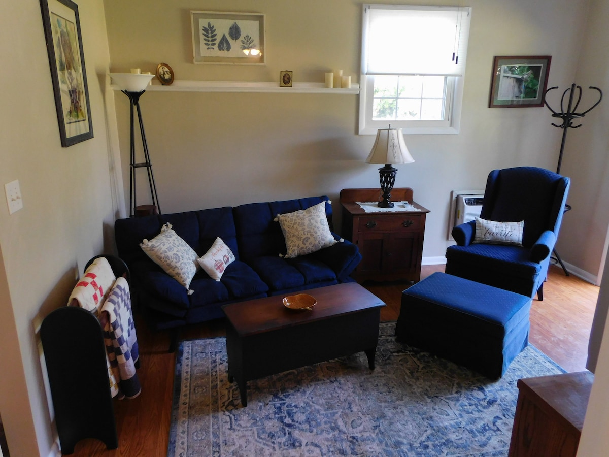 Sprostite se na naši srečni kmetiji v čarobni megli v dolini Roanoke! Naš zasebni apartma za goste z lastnim vhodom in teraso se nahaja sredi čudovitega razgleda na naše urejene vrtove, igrive konje in veličastne gore. Če želite prostor za sprostitev, sprostitev in pomlajevanje, je naš udoben apartma za goste namenjen vam! Za doplačilo sprejemamo samske osebe, pare, majhne družine, dolgotrajne goste in družinskega psa. Oglejte si naše zahteve v našem hišnem redu.